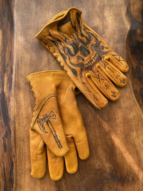 Bu model, tasarım yönü güçlü, benzersiz bir custom motosiklet eldiveni arayanlar için özel olarak geliştirildi. Runik semboller ve skull çizimi; motorcu kültürünün ruhunu, efsanelere dayanan sembolik anlamlarla birleştirir.