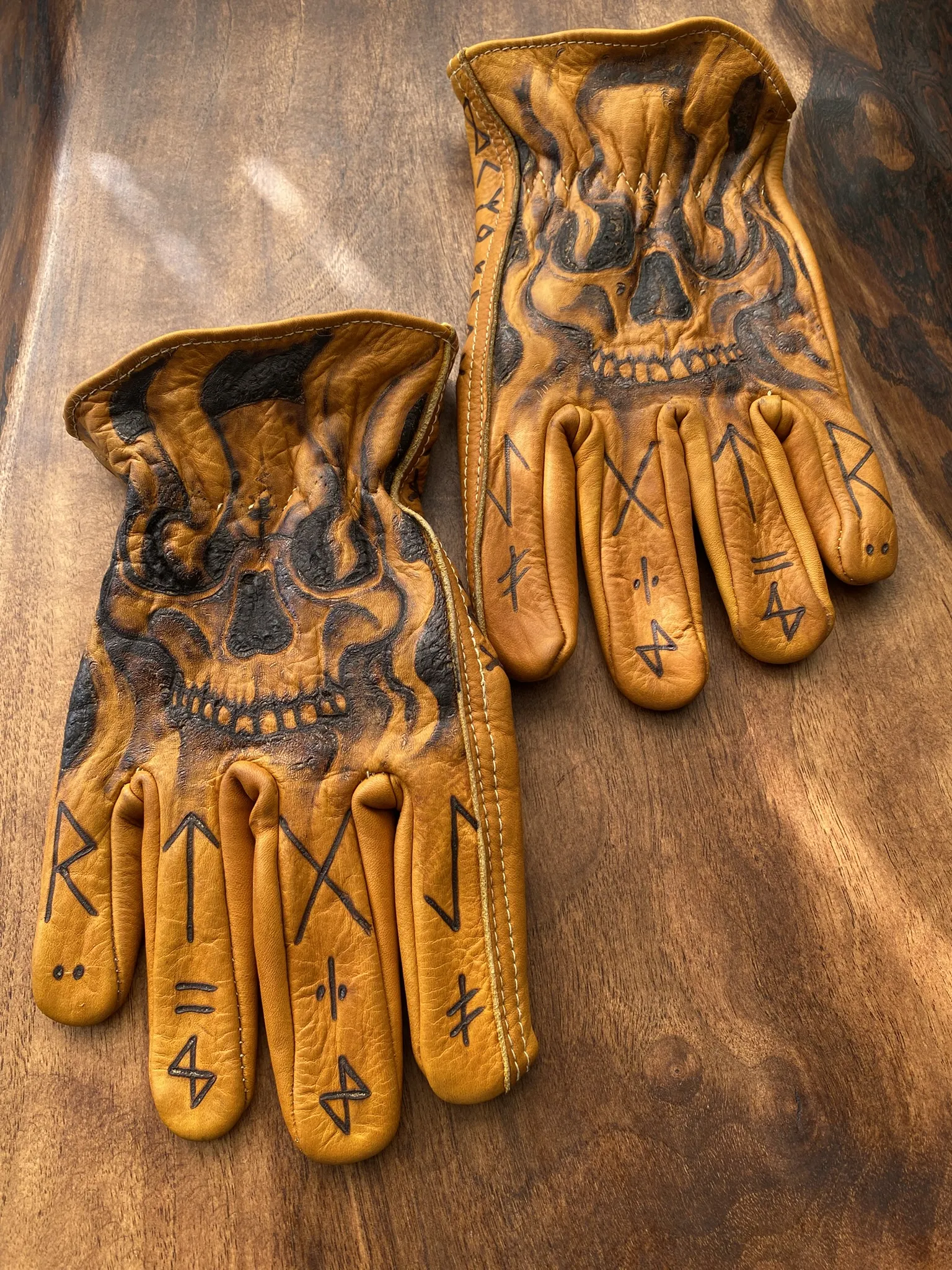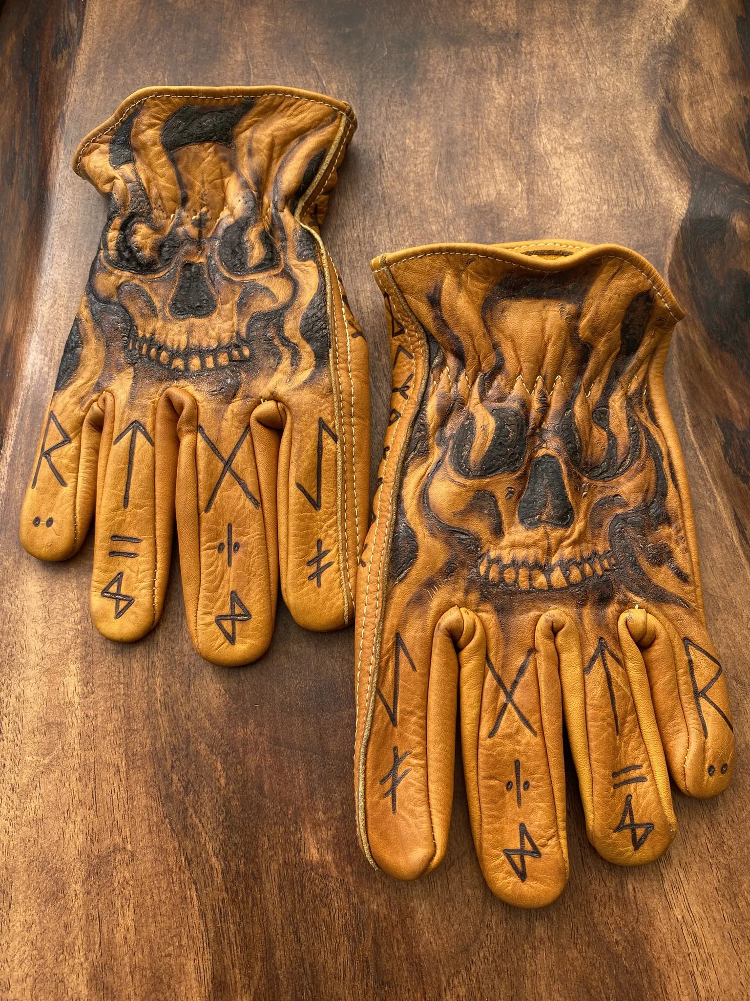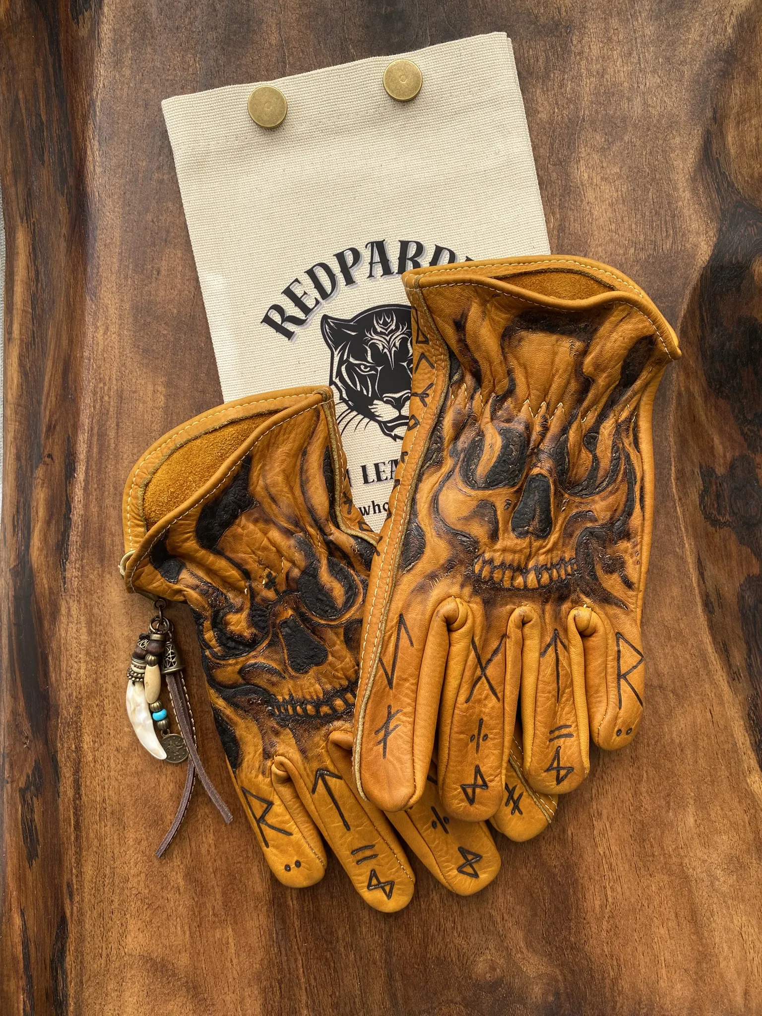 INFERNO RUNE – Runik Detaylı El Yapımı Hakiki Deri Custom Motosiklet Eldiveni